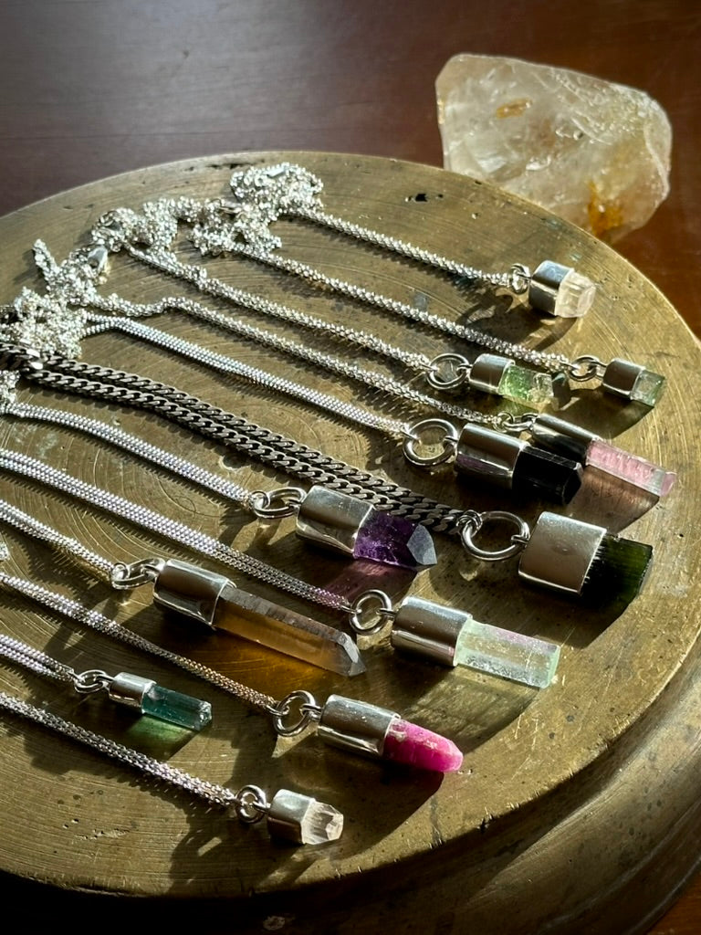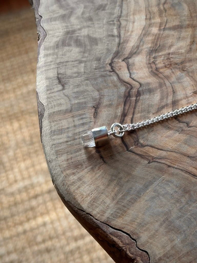 small, white topaz with great clarity, interesting etchings, and a flat termination with facets set in sterling silver on an delicate 18" sterling silver curb chain. handmade.