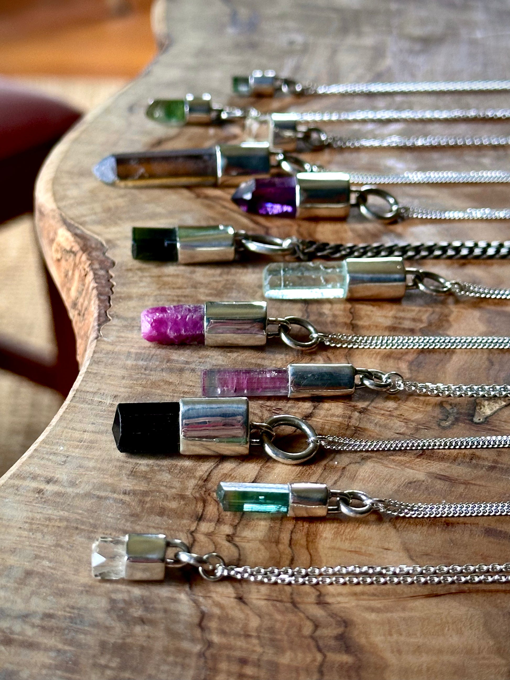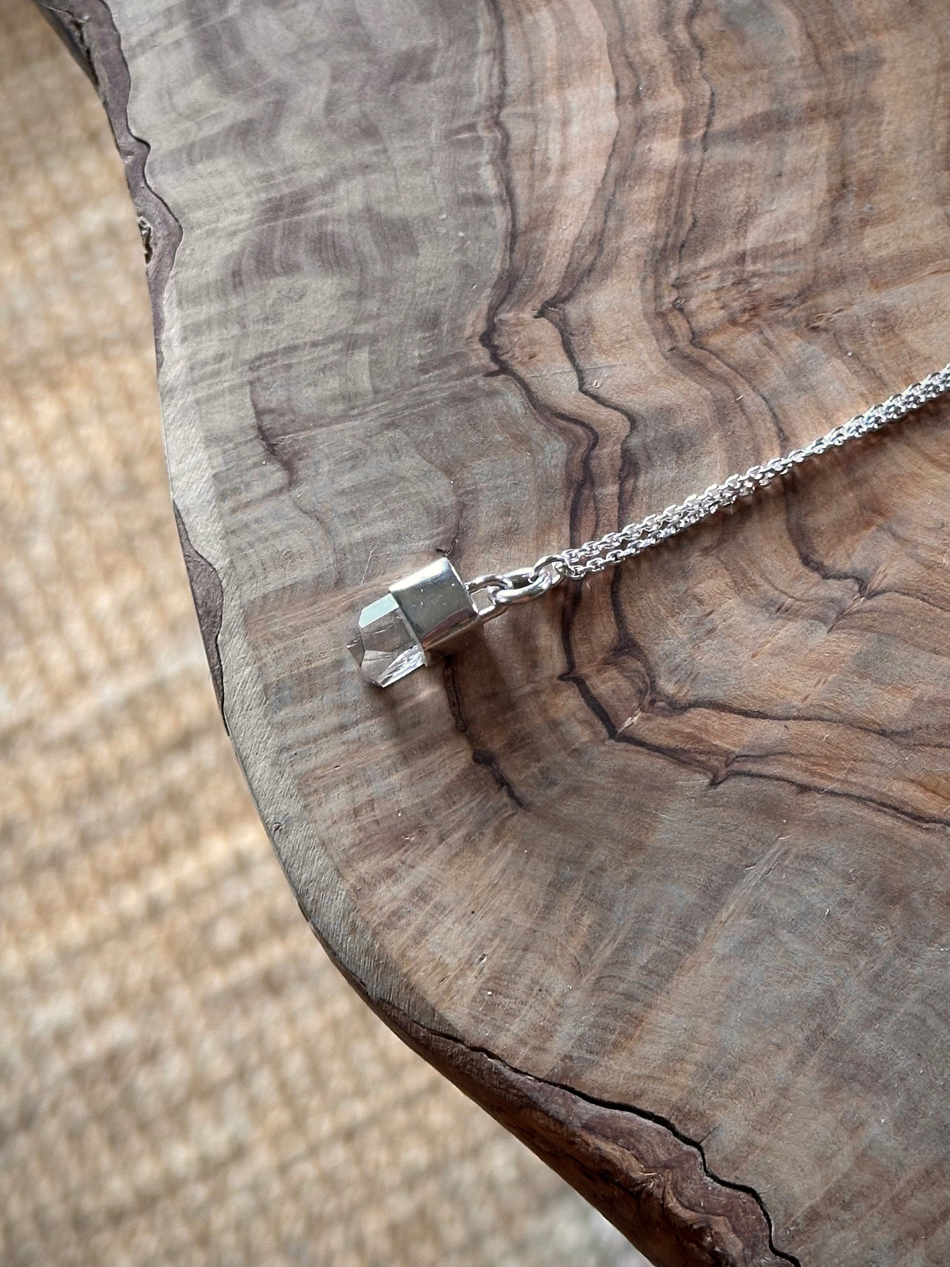small, white topaz with great clarity, interesting etchings, and a flat termination with facets set in sterling silver on an delicate 18" sterling silver curb chain. handmade.