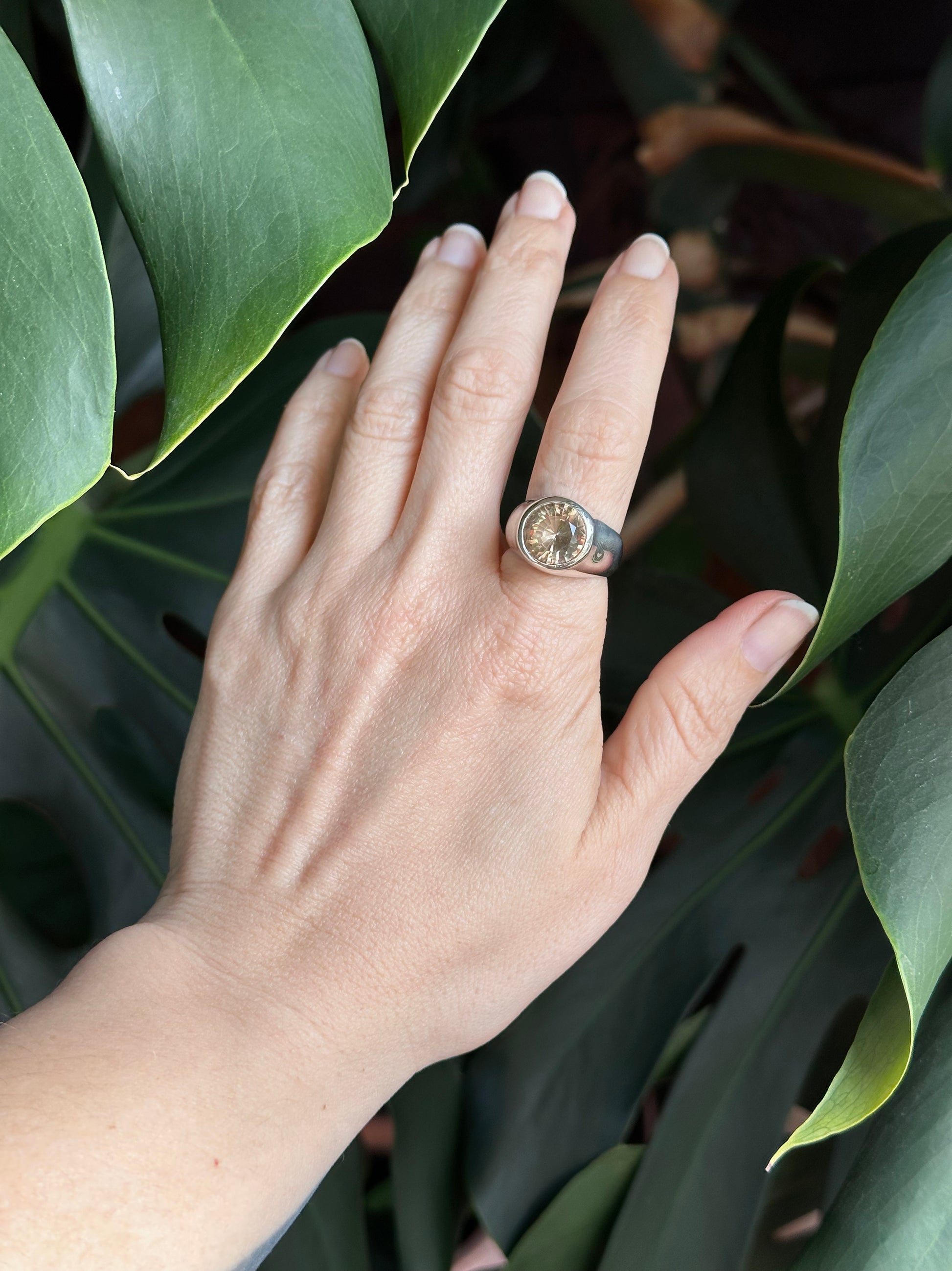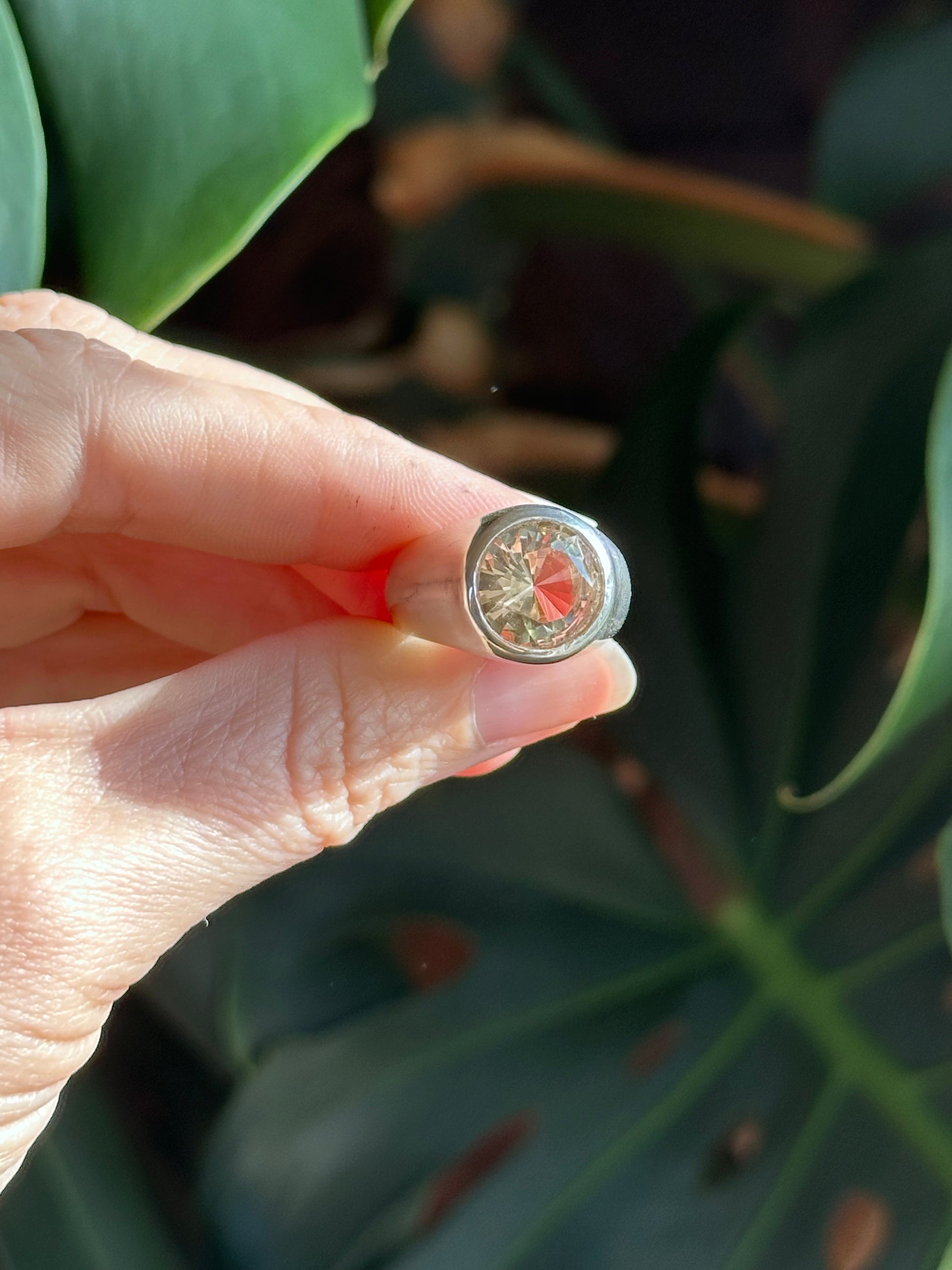 pale gem-grade sherry topaz set in a handmade, cast sterling silver setting.